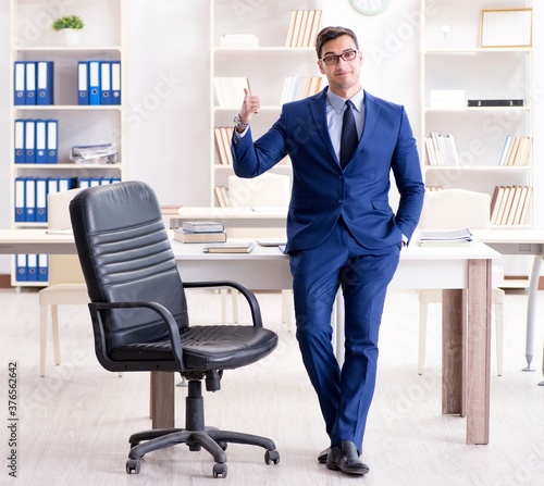Young handsome businessman employee working in office at desk
