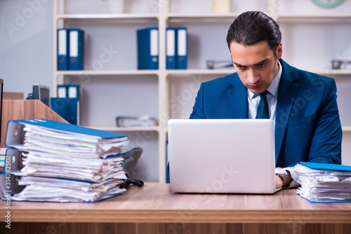 Young handsome businessman working in the office