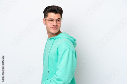 Young handsome caucasian man isolated on white bakcground . Portrait