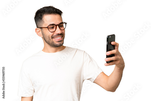 Young handsome caucasian man over isolated chroma key background making a selfie
