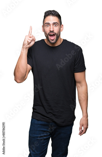 Young handsome man over isolated background pointing finger up with successful idea. Exited and happy. Number one.