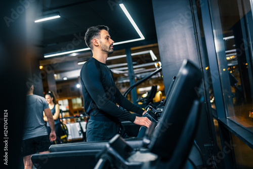 sport, man, treadmill, cardio, jogging, gym, running, athlete, fit, guy, fitness, physical exercise, exercise, activity, training, body, athletic, equipment, male, health, lifestyle, healthy, young, photogenic, club, run, muscular, active, machine, energy, indoor, adult, person, people, modern, masculinity, sportive, bodybuilder, runner, positivity, activewear, muscle