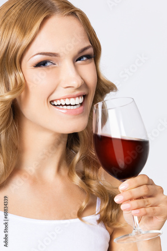 wine, red, drink, drinking, celebrate, celebration, celebrate, holiday, congratulation, woman, woman, girl, people, grey, grey, grey background, female, happy, glasses, person, 1, 1, young, pretty, beautiful, nice, attractive, nourishment, recreation, caucasian, european, alcohol, 20s, 20, blond, blond