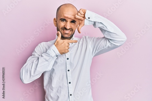 casual attire, clothes, concept, creativity, face, finger, frame, hand, happy, hispanic, making, man, photo, young, adult, background, bald, beard, border, boy, camera, cheerful, composition, cool, fashion, fashionable, finger, sharpened, framing, gesture, hand, idea, imagination, inspiration, latin, male, people, perspective, photo, pink, planning, portrait, shape, signs, standing, studio, style, stylish, vision