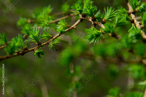 young larix larch branch close up
