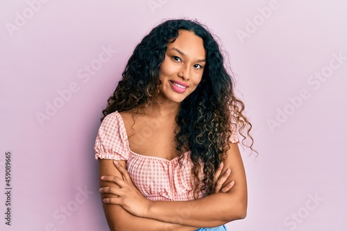 Young latin woman wearing casual clothes happy face smiling with crossed arms looking at the camera. positive person.