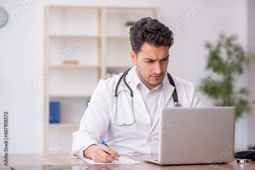 doctor, working, clinic, hospital, medicine, health, health care, care, remote, computer, laptop, online, cyberspace, note, writing, taking, young, trainee, intern, student, practice, job, examining, disease, prescription, surgeon, check-up, medicals, physician, practitioner, recovery, recovering, insurance, healer, consultation, man, discussing, explaining, treatment, diagnosis, diagnostic, specialist, check-up, healthy, work, occupation