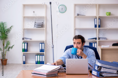 businessman, office, man, employee, ill, sick, disease, disease, health, manager, working, workaholic, workload, auditor, lawyer, sleepy, unhappy, workplace, business, leaves, insurance, health care, adviser, exhausted, stressed, sad, bank, blood, transfusion, bag, injecting, injection, 4, pole, racked, tied-up, stress, fatigue, accountant, overloaded, pressure, pile, drinking, tea, cup, hot drink, break, having, breakfast