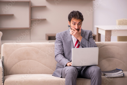 businessman, man, employee, boss, business, accountant, adviser, working, from, home, house, scared, surprised, mistake, error, sad, frustrated, upset, disappointed, unhappy, stressed, sitting, sofa, pandemic, quarantine, remote, virus, social, distance, distant, computer, laptop, online, cyberspace, freelancer, freelance, workaholic, workload, manager, missing, deadline, tied-up, pressure, virtual