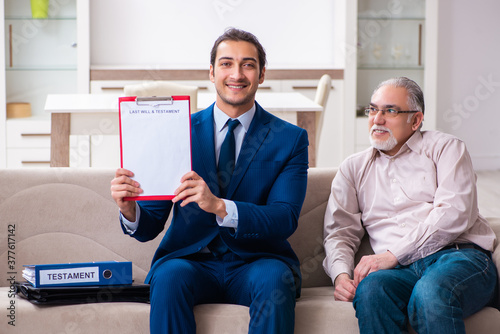man, old, home, notary, testament, last, will, insurance, lawyer, agent, paper, document, contract, writing, adviser, client, adviser, counselor, law, discussing, explaining, aged, senior, pensioner, retiree, policy, inheritance, advocate, counsel, ill, testimony, cancer, legal, retired, presenting, showing, demonstrating, estate, finance, wealth, business, planning, plan, life, heir, executer