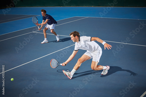 young, man, tennis, double, player, play, achieving, racket, blue, court, accuracy, adult, agile, athlete, athletic, brunette, challenge, competition, competitive, dedication, determination, effort, equipment, exercise, fit, fitness, sharpened, forehand, healthy, indoor, lifestyle, match, motion, move, outdoors, partner, people, performance, recreation, run, sport, strength, swing, togetherness, train, 2, vitality, weekend, white