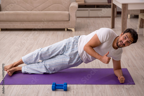 young, man, active, aerobic, athlete, athletic, pajama, happy, strong, muscular, giving, thumb, thumb, up, body, exercise, exercising, fit, fitness, gym, health, healthy, lifestyle, recreation, shape, sport, sport, sporty, training, physical exercise, activity, sportive, home, hobby, indoor, physical, stretching, exercise, morning, gymnastics, routine, yoga, relaxing, male, keeping, floor, house, enjoying, mat, slim