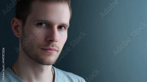 Young man in casual wear, natural side light, soft background - modern simplicity and relaxed confidence