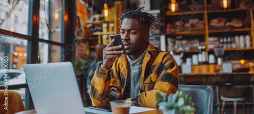 man, cafes, phone, laptop, hot drink, young, stylish, trendy, vibrant, conversation, workspace, modern, casual attire, freelancer, urban, city, technology, communication, interior, window, light, drink, lifestyle, business, professional, sharpened, concentration, multitask, entrepreneur, fashionable, attractive, male, setting, creative, warm, cosy, atmosphere, design, relaxed, hip, contemporary