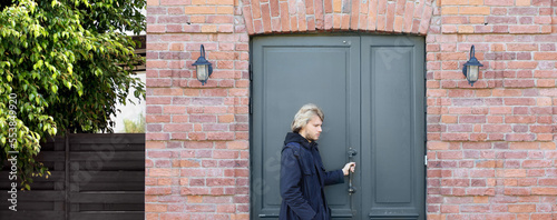 adolescence, adult, brick, building, bye, caucasian, design, door, door handle, door handle, emotion, enter, entrance, entrance door, exit, expression, family, front, adieu, home, house, incoming, inviting, leaves, lifestyle, living, lock, male, man, modern, office, open, outside, people, stair, standing, step, structure, summer, teenage, uncertainty, visit, waiting, wall, welcome, wooden, young