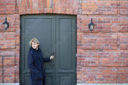 adolescence, adult, brick, building, bye, caucasian, design, door, door handle, door handle, emotion, enter, entrance, entrance door, exit, expression, family, front, adieu, home, house, incoming, inviting, leaves, lifestyle, living, lock, male, man, modern, office, open, outside, people, stair, standing, step, structure, summer, teenage, uncertainty, visit, waiting, wall, welcome, wooden, young