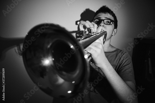 young man playing the trumpet