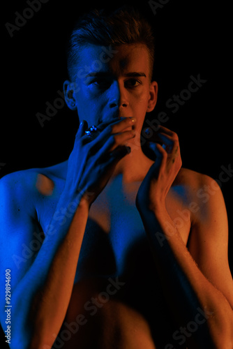 adult, androgynous, background, beauty, bisexual, black, blue, body, boy, caucasian, crazy, dance, dark, european, gay, gradient, guy, half-naked, homosexual, light, male, man, model, naked, people, pose, pride, rainbow, red, sexy, silhouette, studio, tolerance, torso, trans