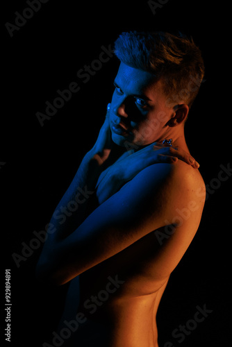 adult, androgynous, beautiful, beauty, bisexual, black, blue, blur, boy, caucasian, dance, dark, diversity, emotion, european, expression, futuristic, gay, gradient, homosexual, man, model, many-coloured, neon, neon light, pose, pride, rainbow, red, sexy, shadow, silhouette, spectrum, studio, tolerance, torso, trans, transgender