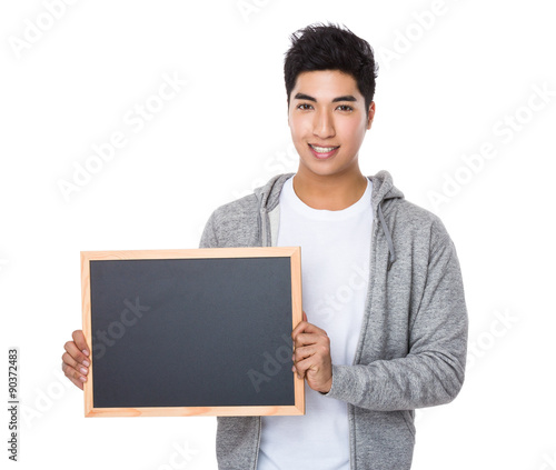man, guy, male, boy, asian, chinese, mixed, indian, middle east, iranian, race, wear, clothes, jacket, coat, blazer, sport, casual attire, sweatshirt, sweater, rain, blackboard, blackboard, blank, empty, wooden, drawing, texture, space, study, show, presentation, hand, hold, promote, isolated, white, background, people, person, portrait, 1, young, adult, mature, grey, photogenic, gentleman, smile, happy