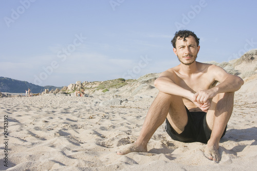 Young man sitting in the sand of a beach - Sardinia, Italy