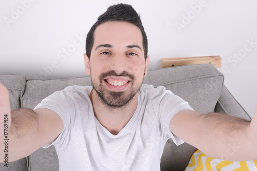 couch, man, selfie, camera, lifestyle, happy, self, photo, photo, portrait, room, young, sitting, guy, attractive, fun, posing, sofa, photogenic, living, picture, home, taking, smiling, caucasian, expression, image, ok, face, homelike, indoor, person, house, leisure, cheerful, enjoy, male, smile, idea, interior, alone, front, casual attire, people, photographing, apartment, image, taken, photograph, boy
