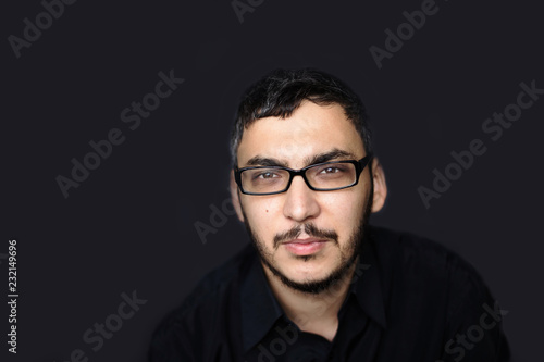 man, young, goggles, portrait, isolated, background, people, guy, studio, person, male, happy, attractive, adult, youth, cheerful, eyewear, shirt, caucasian, 1, photogenic, casual attire, wearing, beard, looking, concept, camera, man, single