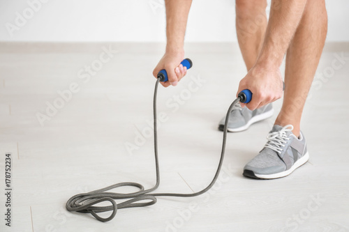 active, activity, adult, athlete, background, body, care, exercise, foot, fit, fitness, floor, habit, hand, health, healthy, hobby, holding, indoor, jumping, leg, leisure, lifestyle, loss, male, man, motivation, 1, person, rope, shoe, skipping, sneaker, sport, activewear, sporty, strength, training, weight, well-being, wellness, white, physical exercise, young