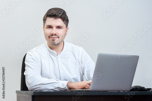 laptop, office, caucasian, computer, man, adult, cyberspace, male, people, sitting, technology, communication, connection, entrepreneur, modern, notebook, student, table, white, wireless, young, business, casual attire, home, learning, distance, happy, working, beard, contemporary, mobile, person, smile, desk, businessman, loft, using, brick, charming, connected, digital, electronic, electronic mail, fabric, industrial, long, network, 1, portable