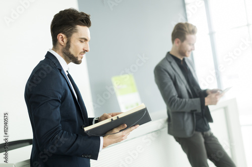 tablet, people, business, team, technology, office, standing, modern, partnership, touch screen, businessman, young, 2, teamwork, work, man, professional, photogenic, colleague, holding, male, red, person, touchpad, man, adult, beard, casual attire, ginger, hair