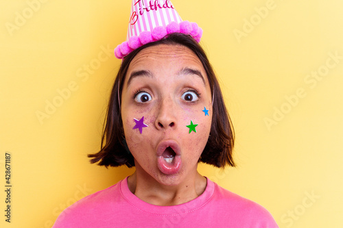 adult, attractive, background, beautiful, beauty, birthday, blue, bright, casual attire, celebration, christmas, colourful, concept, confetti, cute, decoration, face, fashion, female, festive, fun, funky, funny, girl, hair, happy, hat, having, hispanic, holding, holiday, joy, model, 1, party, person, portrait, pretty, sexy, smiling, studio, white, woman, yellow, young