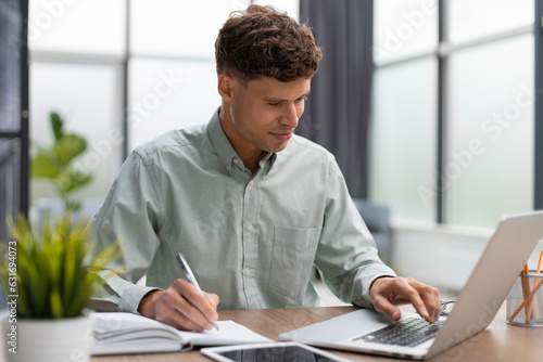 Young modern business man analyzing data using computer while working in the office.