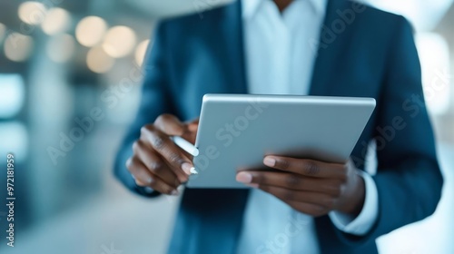 Young negotiator using a tablet to highlight key points, negotiation influence, digital negotiation