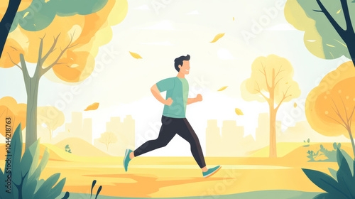 park, running, fitness, young people, man, health, leisure, lifestyle, tree, autumn, season, scenery, slimming, weight loss