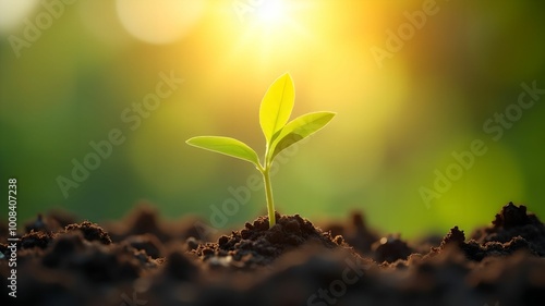 Young Plant Sprouting with Sun Flare - Growth Concept