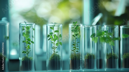 Young Plants Growing in Test Tubes Botanical Research Laboratory Science Experiment