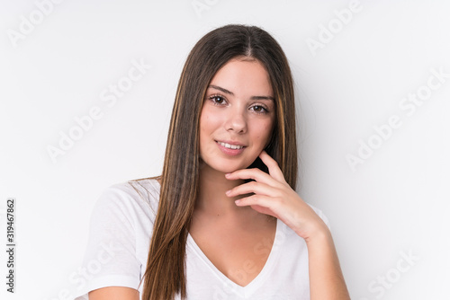 Young pretty caucasian woman face closeup isolated