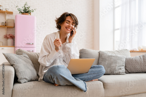 digital, happy, connection, student, beautiful, indoor, employee, apartment, remote, couch, communication, young, online, lifestyle, social, occupation, shopping, studying, browsing, smiling, natural, house, interior, freelance, job, using, person, freelancer, place, working, table, office, chair, sitting, female, home, business, casual attire, work, woman, cyberspace, technology, laptop, sofa, computer, call