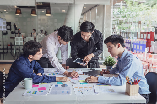 Young professional asian business men team. Group of creative young business men brainstorming, analyzing and planning to work together at the meeting.