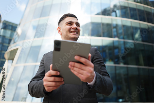 business, professional, tablet, success, modern, skyscraper, glass building, technology, smiling, young men, afternoon, career, portrait, urban, lifestyle, corporate, engagement, innovation, connection, communication, achievement, happiness, fashion, confidence, workspace, device, elegant, architecture, city, networking, aspiration, professionalism, leadership, entertainment, casual attire, interaction, cheerful, environment, ambience, digital, social, productivity, exploration, multitask