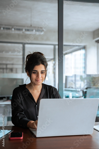 vertical, laptop, woman, specialist, business, office, lady, computer, working, work, using, entrepreneur, people, typing, manager, desk, learning, technology, professional, businesswoman, analysing, communication, person, employee, corporate, finance, table, company, middle, banking, young, app, application, browsing, eastern, digital, canvasses, datum, information technology, indian, hispanic, latin, latino, programmer, online, virtual, focused, serious