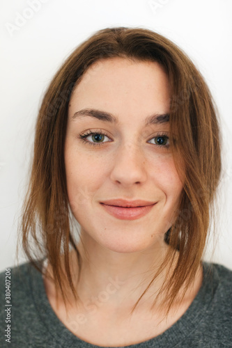 adult, attractive, background, beautiful, brunette, casual attire, caucasian, confident, cool, cosmopolitan, face, female, head, head shot, hispanic, horizontal, isolated, latino, looking, model, modern, natural, 1, people, person, portrait, real, standing, white, woman, young, real people, on white, 20s, girl, adult, grown-up