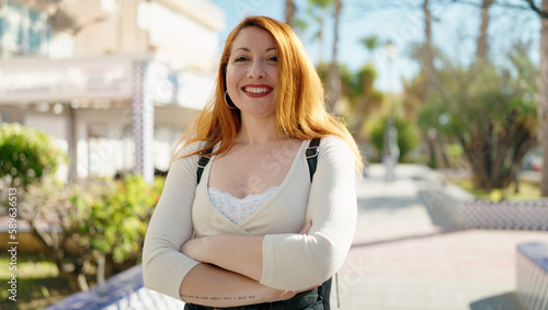 Young redhead woman at park