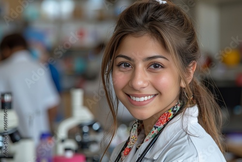 scientist, laboratory, research, colleague, smile, labcoat, microscope, chemistry, biology, education, workplace, teamwork, bright, science, health, experimentation, learning, technology, innovation, career, sharpened, determination, academic, youth, discovery, smiling face, interaction, studying, exploration, passion, skill, collaboration