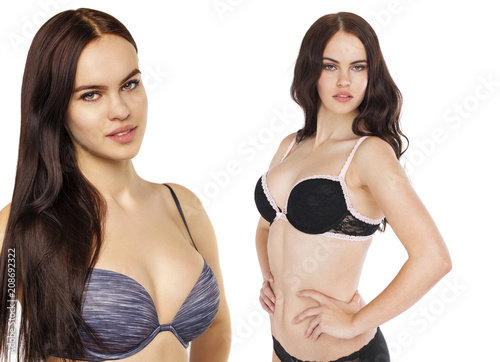 collage, 2, twin, girl, model, sister, woman, sexy, russian, underclothing, breast, closeup, bust, human, isolated, white, diet, adult, fit, studio, bikini, glamour, people, close, caucasian, female, fashion, lingerie, cute, elegant, portrait, lady, figure, up, bra, young, face, sensual, sexual, busty, beauty, hair, beautiful, background, couple, brunette, pretty, erotic