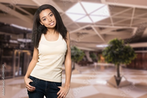 Young smiling business woman, business work concept.