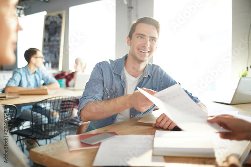 business, person, young, adult, man, professional, profession, employee, job, contemporary, businessman, manager, meeting, corporate, executive, workplace, paper, economist, financier, group, teamwork, colleague, giving, contract, negotiation, caucasian, financial, office, happy, human