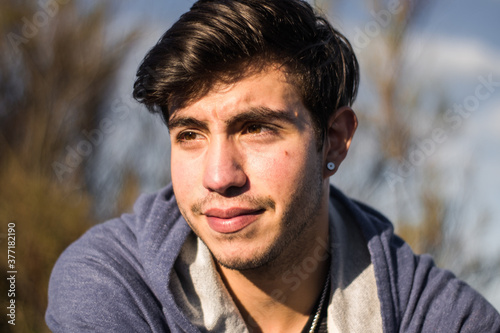young social media positive concept travel campaign advertising men's fashion, natural summer water concept