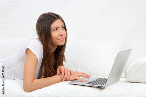 laptop, female, woman, white, technology, computer, cyberspace, smile, happy, casual attire, lying, woman, person, studying, home, typing, young, joy, beautiful, attractive, indoor, on, front, student, caucasian, room, cheerful, space, horizontal, smiling, girl, sofa, study, notebook, brunette, working, researching, business, success, mobile, banking, online, online shopping, learning, education, training, payment