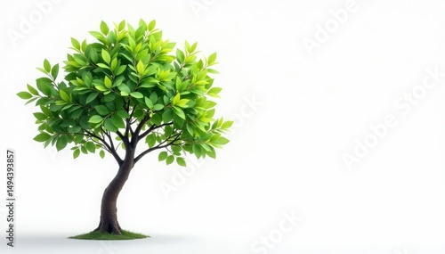 Young tree, delicate leaves, stark white backdrop, texture, horizontal